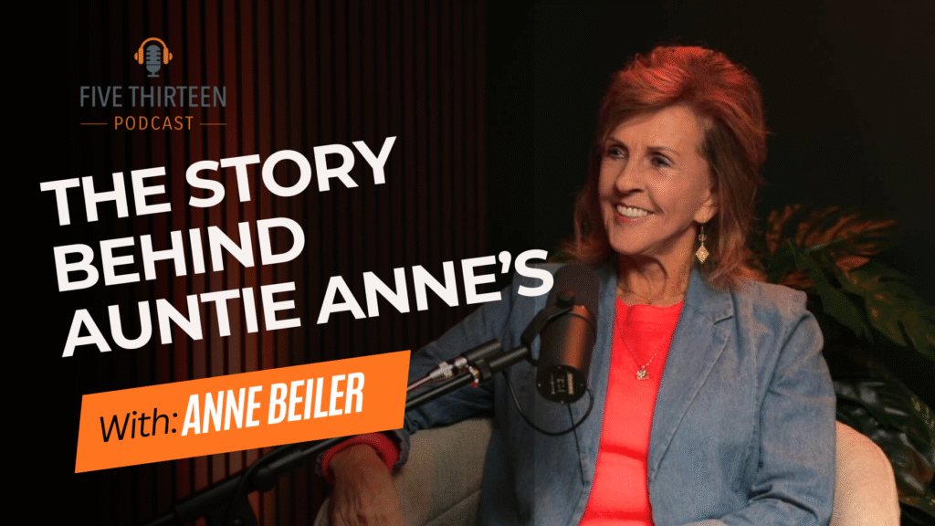 In this episode of The Five Thirteen Podcast, Ryan sits down with Anne Beiler, founder of Auntie Anne’s Pretzels, to explore the remarkable story behind one of the world’s most iconic franchises. Anne shares how she built a global brand with no formal education, no business plan, and no money — and how her deepest personal tragedy became the foundation of her life’s purpose. From growing up on an Amish farm in Lancaster County to leading a worldwide pretzel company, Anne opens up about healing, faith, guilt, shame, calling, and the courage to step into the story only you can live. Her message is simple but powerful: all things are truly possible, and you don’t know what God can do on the other side of your pain.